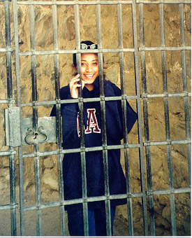 This is where I got put after being arrested in Spain. J/K!!! I'm behind bars of a castle where we saw big huge wind mills at.